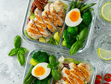 It can be difficult to eat when you’re not hungry, but it’s important to get enough nutrition to support your body. Aim for smaller, nutrient-rich meals or snacks every 3–5 hours. This steady intake helps maintain stable blood sugar and energy levels. Meal prepping and having nutritious ready-to-eat foods on hand can help make sure you have easy meals and snacks available throughout the day.